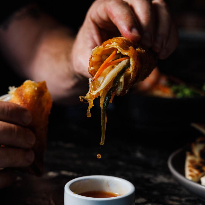 We take the dishes you know by heart and rebuild them with aggressive intentionality. Why a bowl of Pad Thai when you can have the soul of the dish—the tamarind heat, the peanut crunch, the lime-slicked silk—condensed into a shattering, golden-fried egg roll?